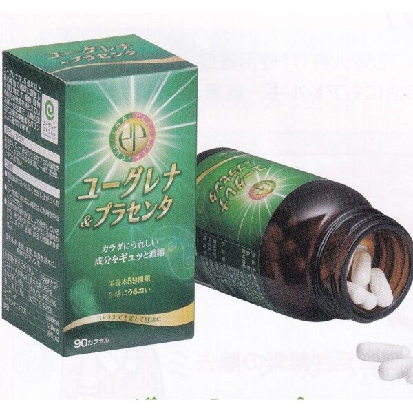 | 原材料名 | ユーグレナグラシリス、ゼラチン、コーンスターチ、豚プラセンタエキス末、セルロース、ビタミンC、ステアリン酸カルシウム、着色料(酸化チタン)、サイクロデキストリン、葉酸、(原材料の一部に乳・豚肉・ゼラチンを含む) |
